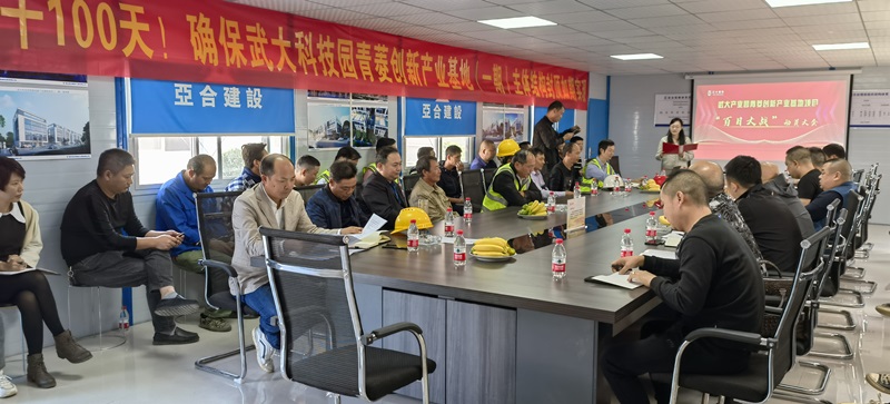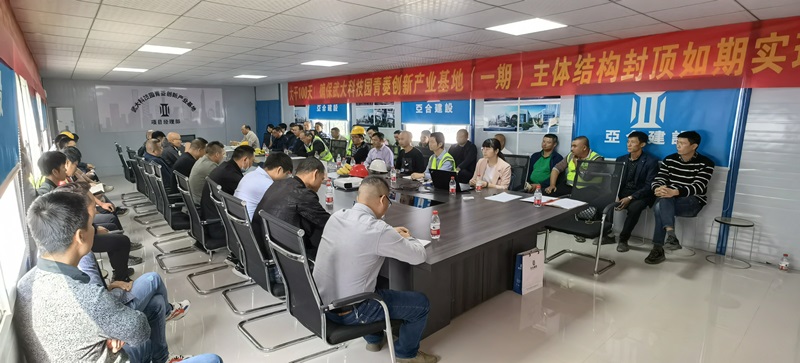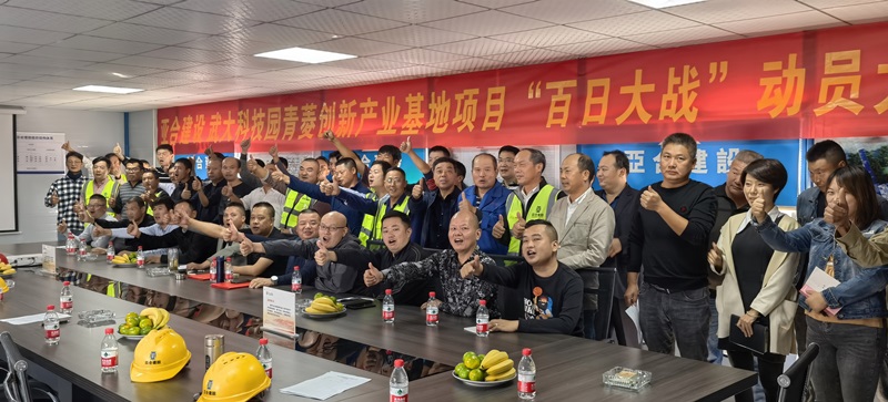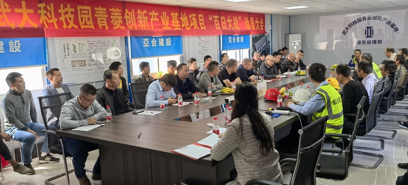 2021年10月12日上午11時(shí),湖北亞合建設(shè)在武大產(chǎn)業(yè)園青菱創(chuàng)新產(chǎn)業(yè)基地項(xiàng)目部會議室組織召開“百日大戰(zhàn)”動員大會。該會議由亞合建設(shè)行政部召開主持,并邀請甲方楚朗公司領(lǐng)導(dǎo)、亞合建設(shè)董事長、總經(jīng)理、工程副總、商務(wù)副總、安環(huán)經(jīng)理、采購經(jīng)理、和平項(xiàng)目經(jīng)理、塔子湖項(xiàng)目經(jīng)理、大橋項(xiàng)目經(jīng)理、青菱項(xiàng)目一工區(qū)、二工區(qū)項(xiàng)目經(jīng)理、項(xiàng)目管理人員、勞務(wù)班組、施工員等五十余人參加,會議明確了100天的項(xiàng)目進(jìn)度計(jì)劃、施工方案及獎懲措施,以保證武大科技園青菱創(chuàng)新產(chǎn)業(yè)基地(一期)主體結(jié)構(gòu)百日封頂目標(biāo)如期實(shí)現(xiàn)。
