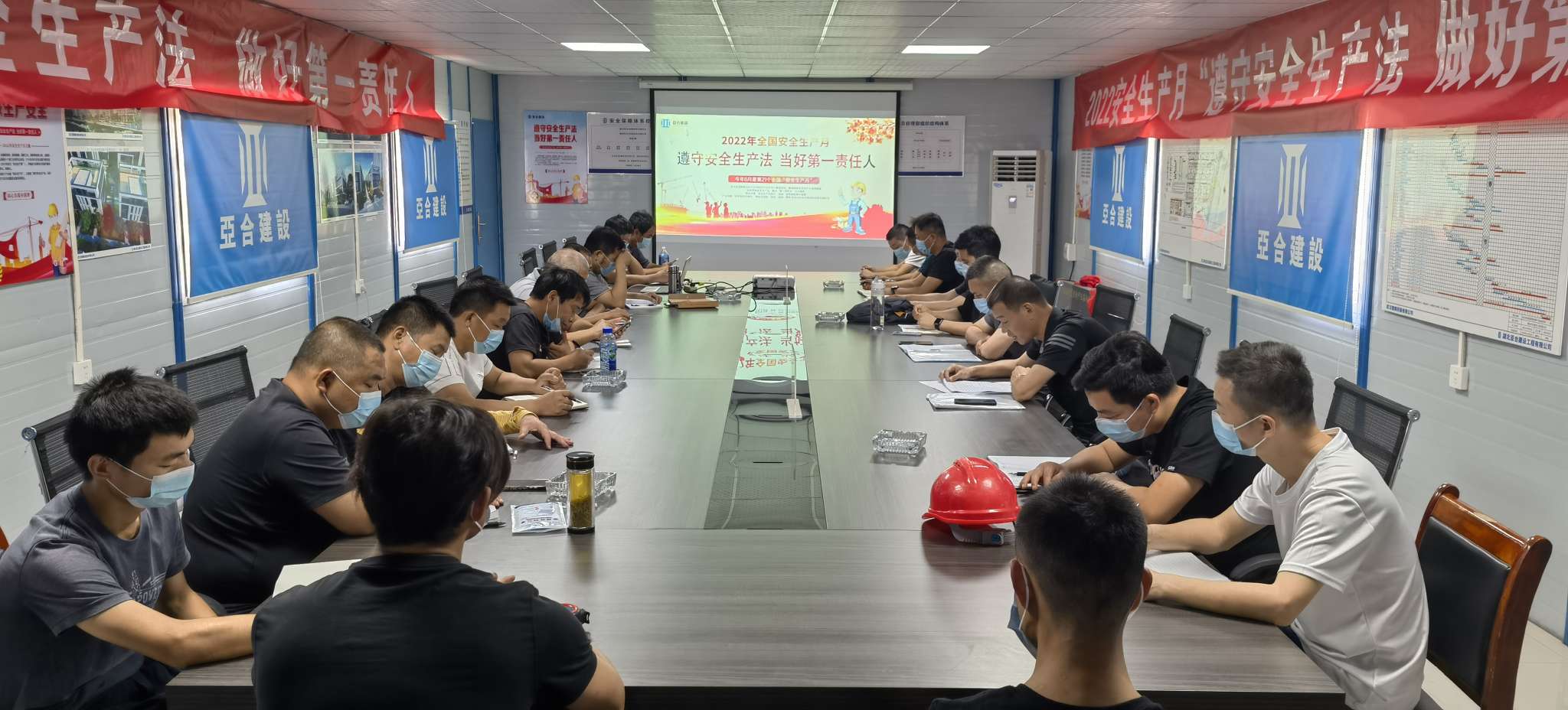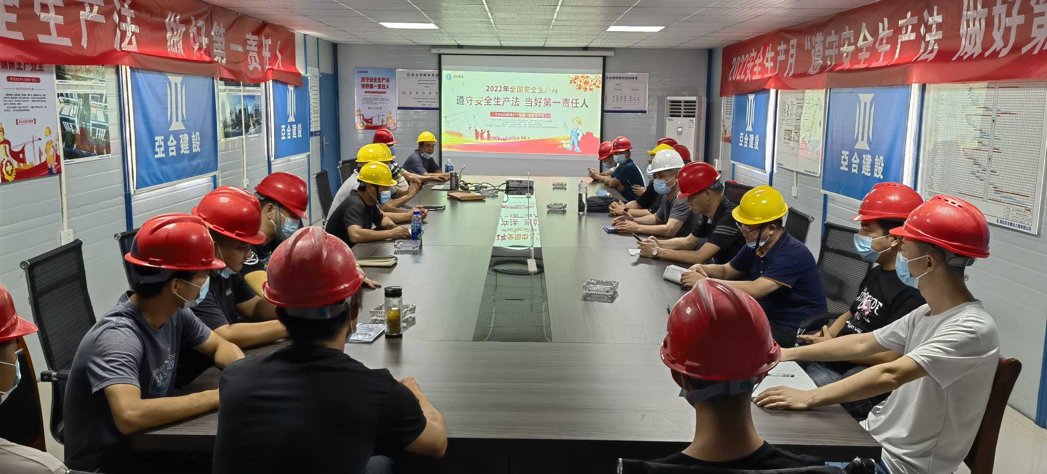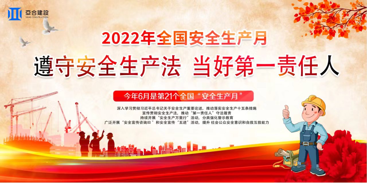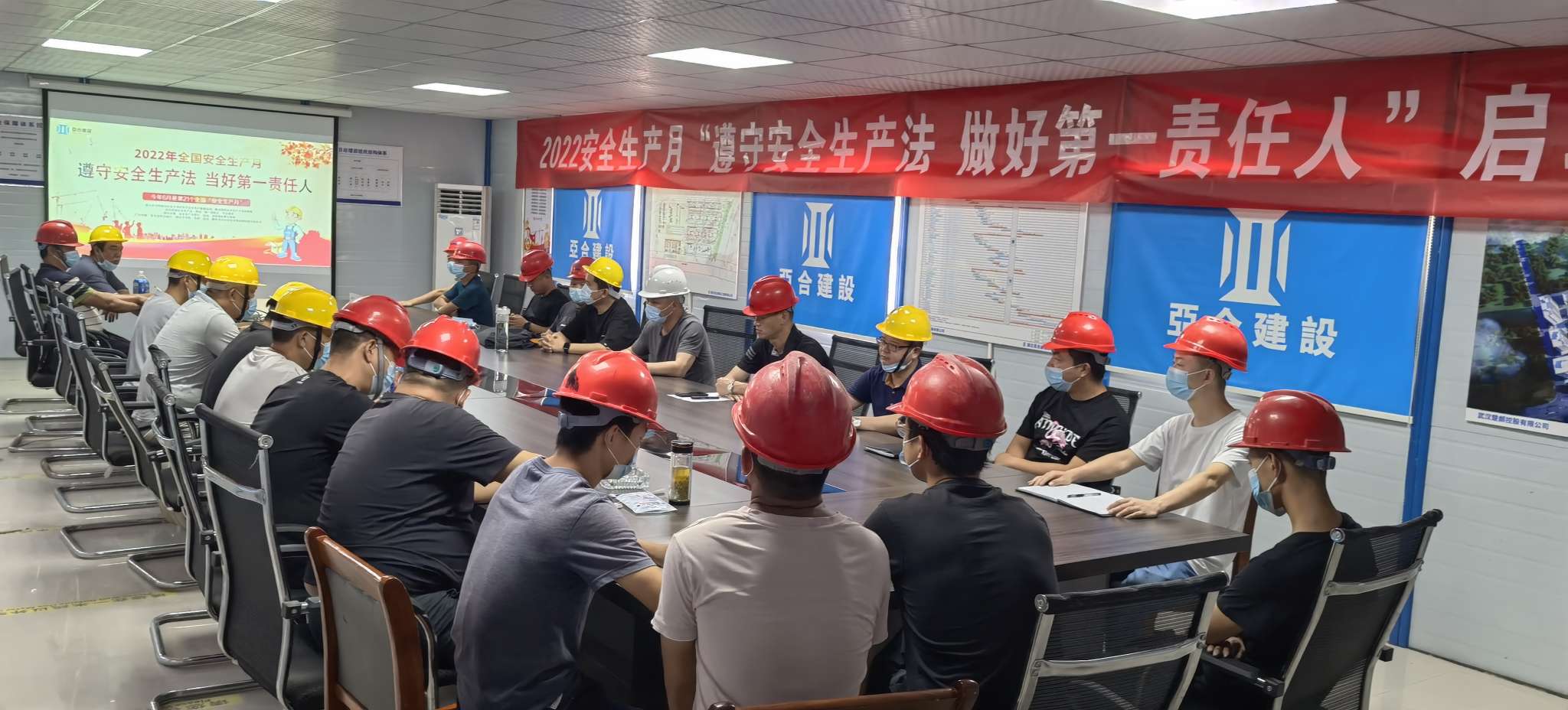 2022年6月是第21個(gè)全國安全生產(chǎn)月,主題為“遵守安全生產(chǎn)法,當(dāng)好第一責(zé)任人”。6月8日,湖北亞合建設(shè)于青菱產(chǎn)業(yè)園項(xiàng)目部舉行2022年“安全生產(chǎn)月”啟動(dòng)儀式,主要任務(wù)是深入貫徹落實(shí)安全生產(chǎn)工作部署,全面部署公司“安全生產(chǎn)月”工作,公司總經(jīng)辦、安環(huán)部及各項(xiàng)目部管理人員參加了會議。