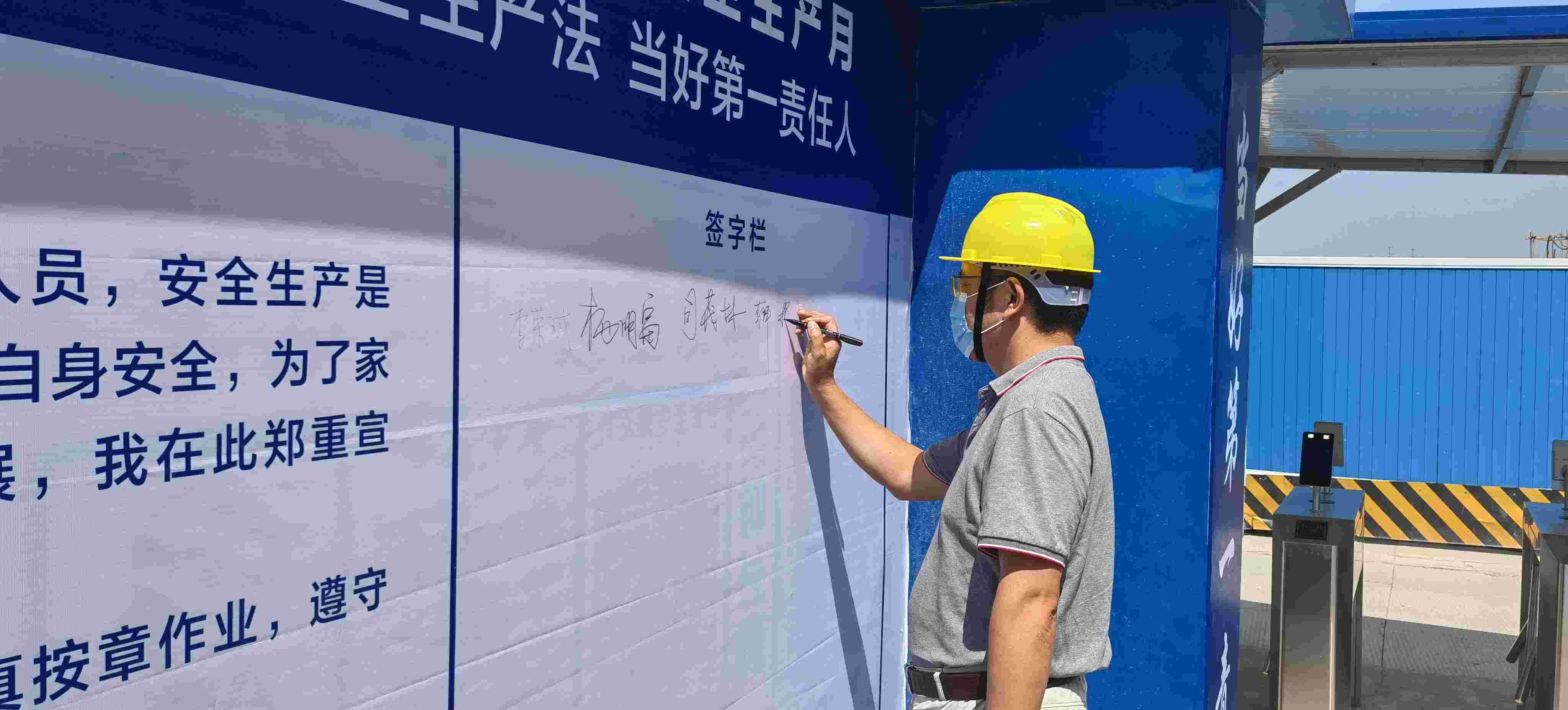 儀式最后,安環(huán)經(jīng)理韓衛(wèi)帶領(lǐng)全體人員來到“遵守安全生產(chǎn)法,當(dāng)好第一責(zé)任人”宣傳墻上進(jìn)行莊嚴(yán)宣誓并簽字承諾。啟動(dòng)儀式營造了良好的安全生產(chǎn)氛圍,提高了全員的安全思想認(rèn)識,取得了圓滿成功。
